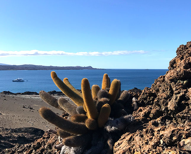 This is a wonderful setting for snorkeling with tropical fish, star fish and with good possibilities of swimming with Galapagos penguins, white tip sharks, sea lions and turtles.